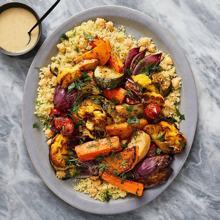 Pour une version végétarienne, remplacez la viande par une variété de légumes rôtis : potiron, poivrons, aubergines, et panais. Les légumes peuvent être rôtis au four avec des épices comme le cumin et le paprika pour une saveur intense.