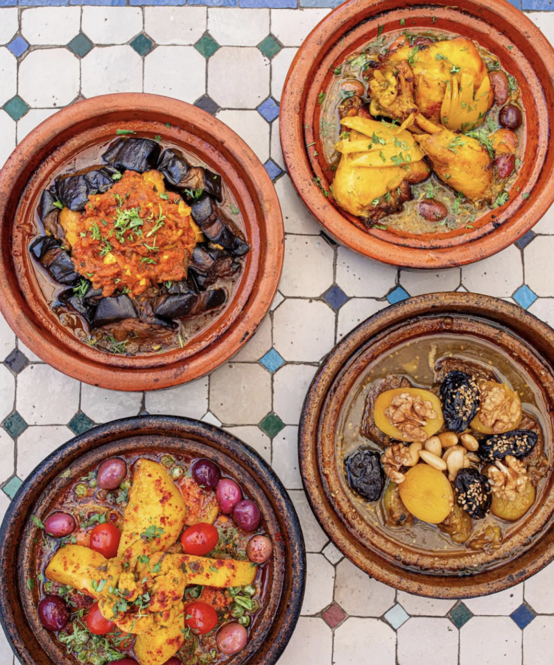 C’est un classique incontournable pour un réveillon à Marrakech. Comptoir Darna allie gastronomie marocaine et spectacle avec des danseuses orientales envoûtantes. Le menu festif inclut une pastilla royale aux fruits de mer (450 MAD), un tajine d’agneau aux pruneaux et amandes (320 MAD) et un assortiment de pâtisseries marocaines en dessert (150 MAD). Entre chaque plat, des performances captivantes rythment la soirée, promettant une expérience à la fois gastronomique et sensorielle.