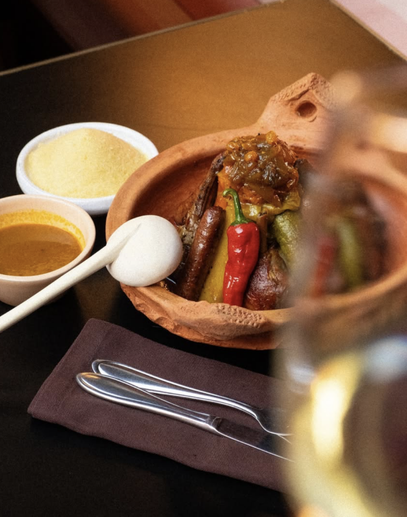 Dans un décor raffiné mêlant bois sombre et lanternes orientales, Azar propose un voyage culinaire exceptionnel. Le menu spécial Nouvel An débute avec une sélection de mezzés, dont le fameux houmous au citron confit et les sambouseks au fromage (250 MAD). Les amateurs de viande seront ravis par le kafta grillé et ses épices envoûtantes (320 MAD). Pour finir, le mouhalabieh, une crème libanaise parfumée à la fleur d’oranger, est incontournable (120 MAD).