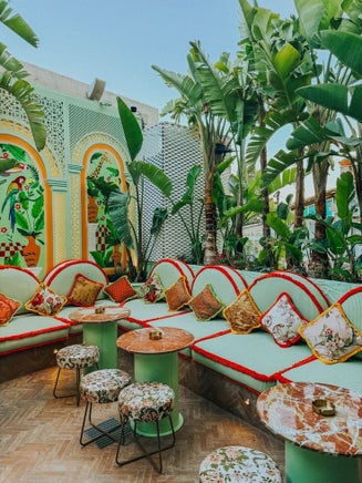 Un rooftop citadin et branché dans le quartier moderne de Marrakech.
