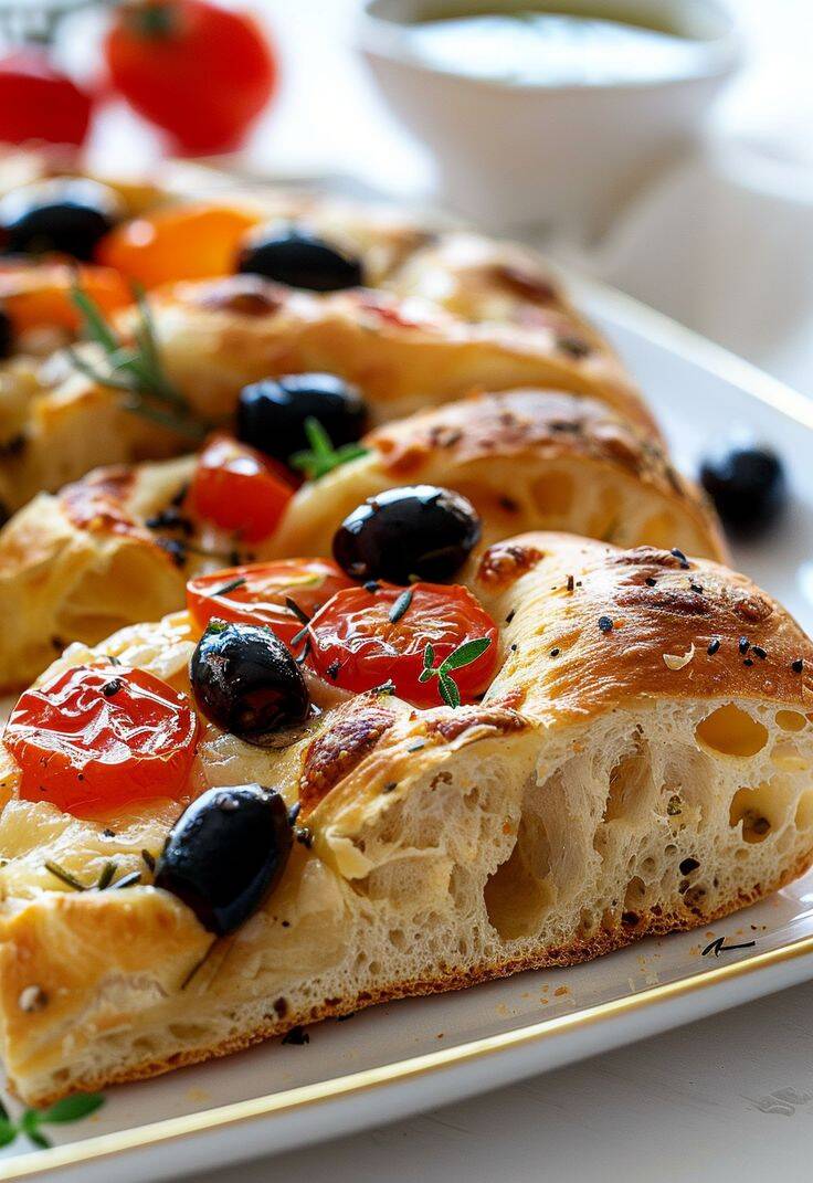 - Focaccia aux olives et au romarin : Ajoutez des olives noires et des brins de romarin frais sur la pâte avant de cuire. Arrosez d'huile d'olive et saupoudrez de sel.