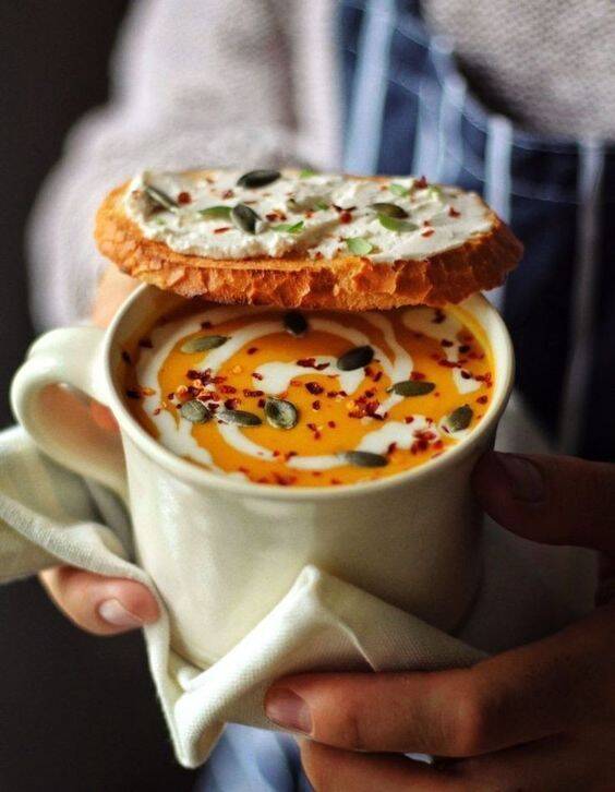 - Servez la soupe chaude avec un filet de crème de coco pour une touche gourmande et crémeuse.