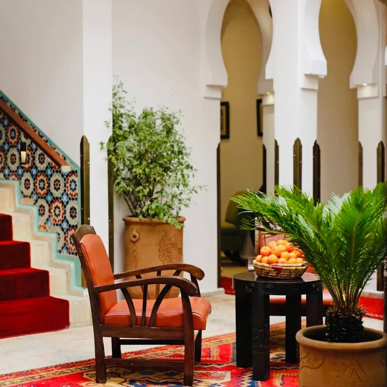 Le charme de La Maison Arabe réside en grande partie dans son cadre exceptionnel. Situé dans une ruelle paisible de la médina, le restaurant s'ouvre sur un patio luxuriant, avec des fontaines murmurantes et une végétation abondante qui crée une oasis de tranquillité. Les intérieurs, ornés de zelliges, de lanternes en cuivre et de tapis berbères, évoquent un Maroc intemporel, où chaque détail a été soigneusement pensé pour offrir une expérience immersive.