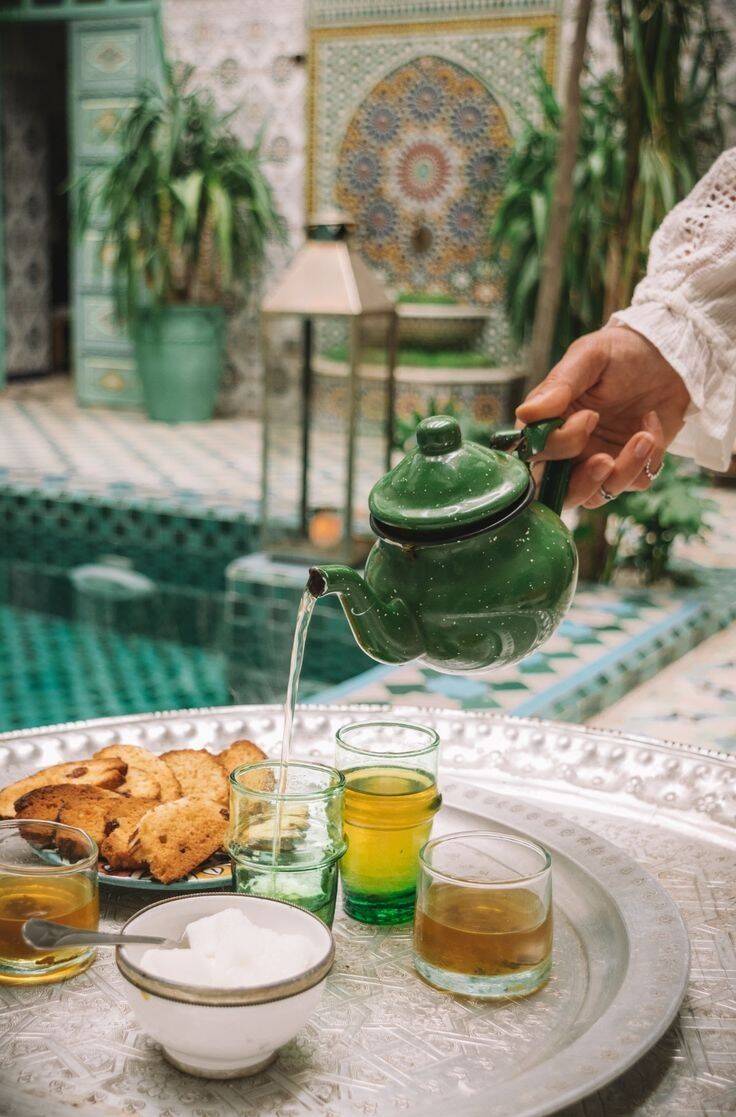 Le thé à la menthe est un élément incontournable de l'hospitalité marocaine. Préparé avec soin et servi avec élégance, il est souvent offert aux invités en signe de bienvenue. La préparation et le service du thé sont considérés comme un art, et chaque famille a sa propre méthode et recette pour préparer cette boisson emblématique.