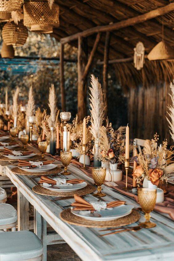 Le banquet d’un mariage marocain est tout aussi somptueux que la cérémonie elle-même. Les convives profitent de plats typiques tels que le méchoui (agneau rôti) et divers tajines. La table est garnie de délices, incluant jus de fruits, petits fours, fruits secs, et bien sûr, le traditionnel thé à la menthe.