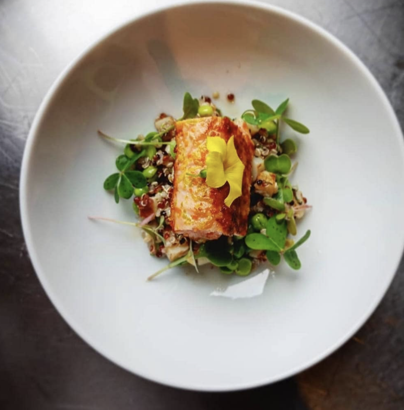 Dîner dans le grand salon ou les petits, dehors ou dedans , pur moment de raffinement. Au menu, Langouste glacée au jus de carcasses, pinces en raviole, pressé de tomate aux écorces d'oranges (22€), Noisette d'agneau au beurre romarin, crème d'ail, déclinaison autour de la carotte, jus d'agneau (32€) ou encore le dessert Rose-Framboise, sablé aux amandes, gelé de framboise à la rose, mousse framboise, crème diplomate et sorbet framboise à la rose (16€).