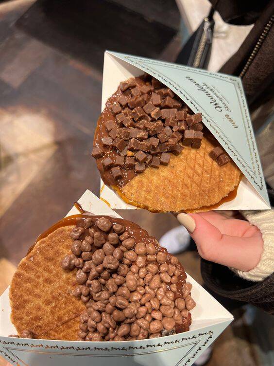 Les stroopwafels sont des gaufres fines remplies de caramel. Ce délice sucré est généralement dégusté chaud, souvent réchauffé au-dessus d’une tasse de café ou de thé pour faire fondre le caramel. C'est un incontournable pour tous ceux qui ont une dent sucrée.
