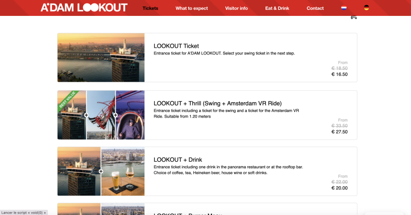 - Billet balançoire d’Amsterdam ou VR Ride : 6 € par attraction